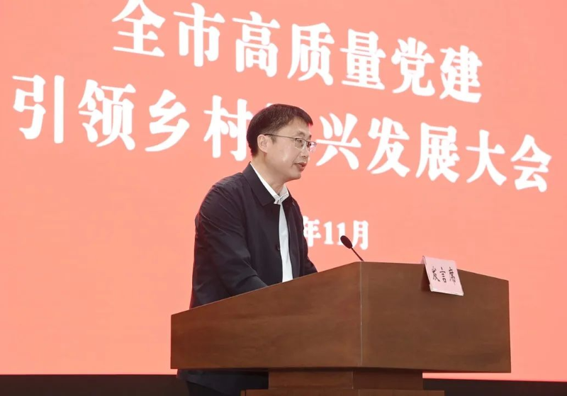 ▲劉源在全市高質(zhì)量黨建引領(lǐng)鄉(xiāng)村振興發(fā)展大會(huì)上發(fā)言